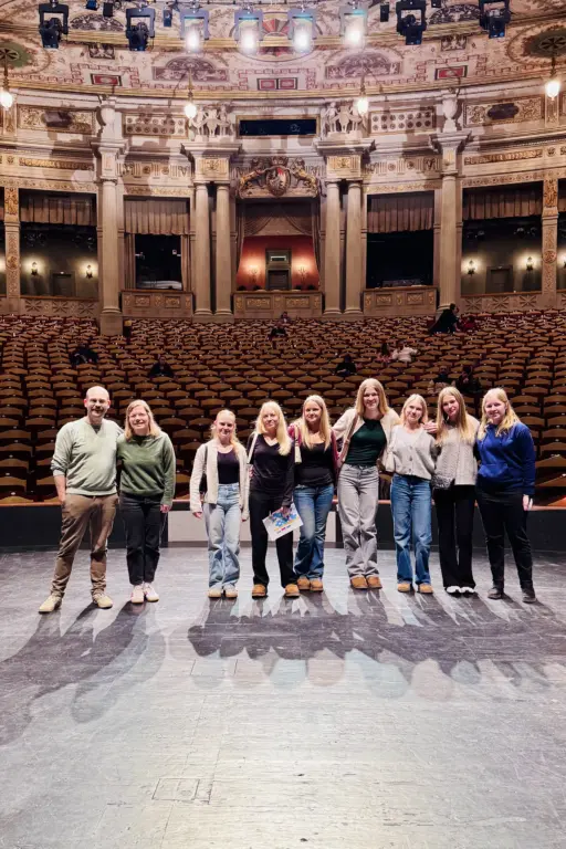 Am Nachmittag stand ein weiteres Highlight auf dem Programm, denn wir bekamen eine Führung hinter den Kulissen des Nationaltheaters. Dort machte Isabella uns durch ihre offene Art bewusst, wie viel Wert auf Gestaltung, Handwerk und Kreativität in einem so bekannten Opernhaus gelegt wird. Sie zeigte uns, was hinter der Bühne abläuft, und führte uns in viele verschiedene Räume. Besonders im Kopf geblieben ist uns der Orchestergraben, da man von dort aus den gesamten Opernsaal bewundern kann. Insgesamt war dies ein sehr spannender und exklusiver Einblick, den wir so schnell nicht vergessen werden.