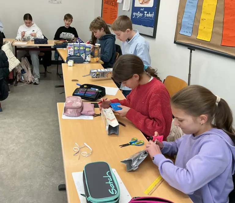 Und zu guter Letzt haben wir selbst upcycelt, indem wir aus alten Milchverpackungen nützliche und funktionierende Geldbeutel gebastelt haben.