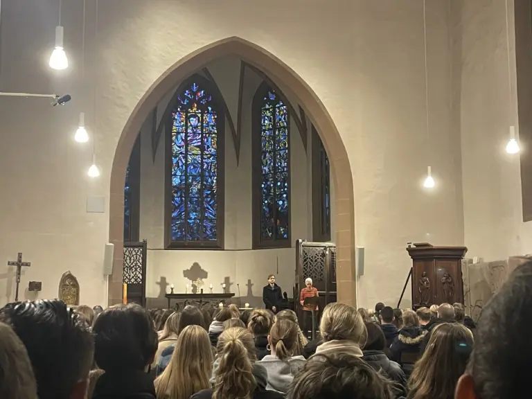 Am Freitag, 21.11.2025, feierten wir in der Stiftskirche einen Gottesdienst unter dem Motto „Wir sagen danke“. Gemeinsam mit den Klassen der Unterstufe hielten wir inne und dankten Gott – nicht nur für das tägliche Brot, sondern für die Menschen, die unser Leben reich machen: Freunde, Eltern, Lehrkräfte und Mitschülerinnen und Mitschüler. Auch für Frieden und ein sicheres Zuhause wollten wir bewusst „danke“ sagen.